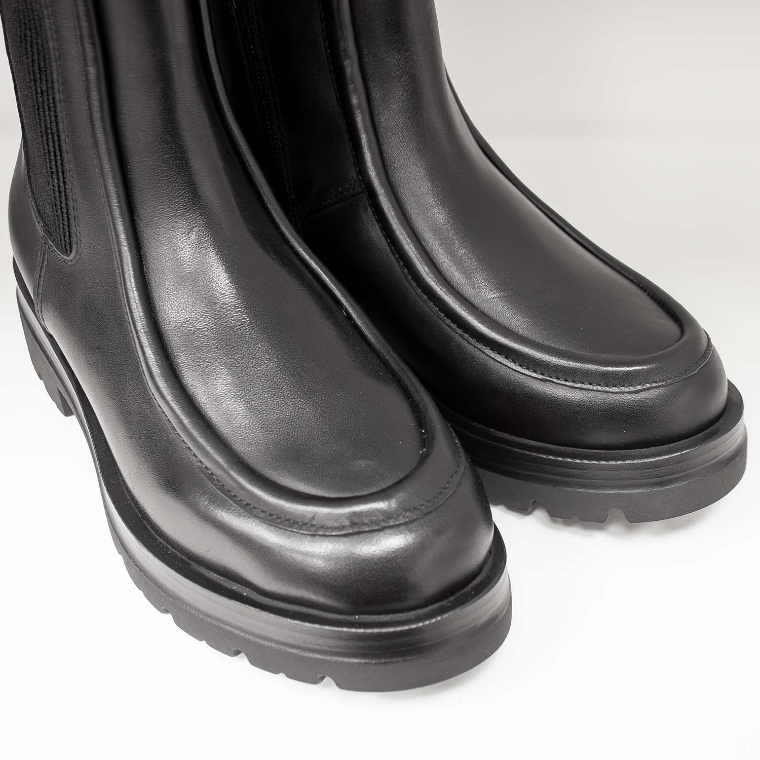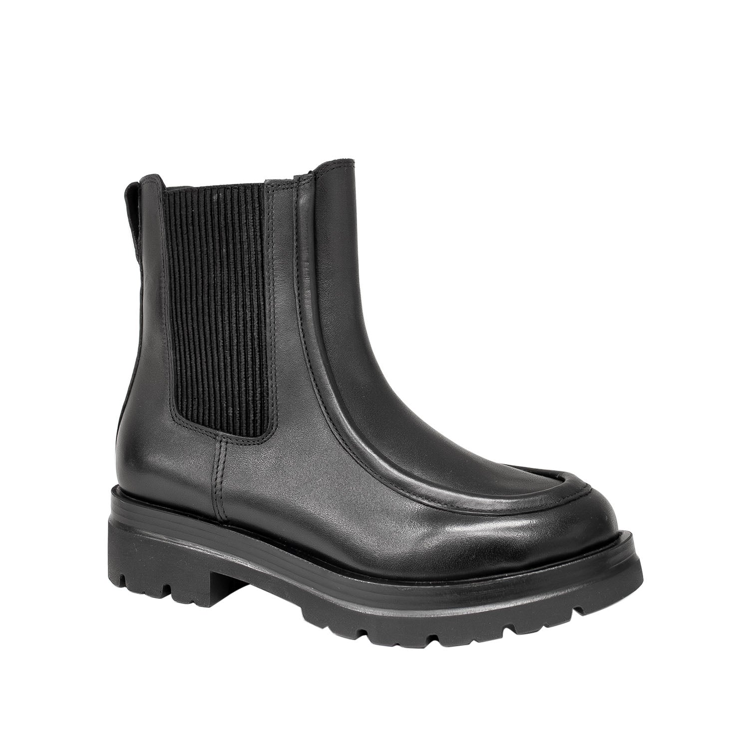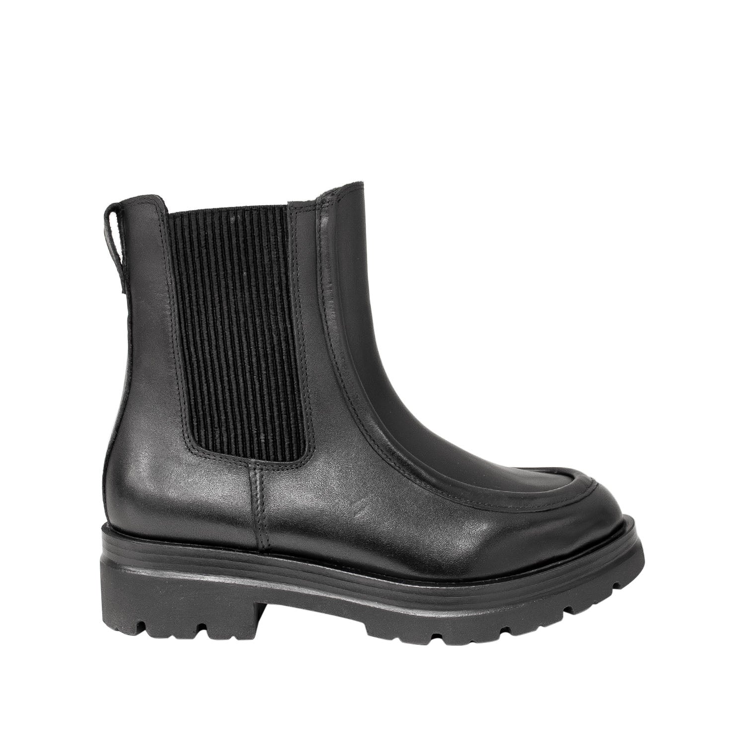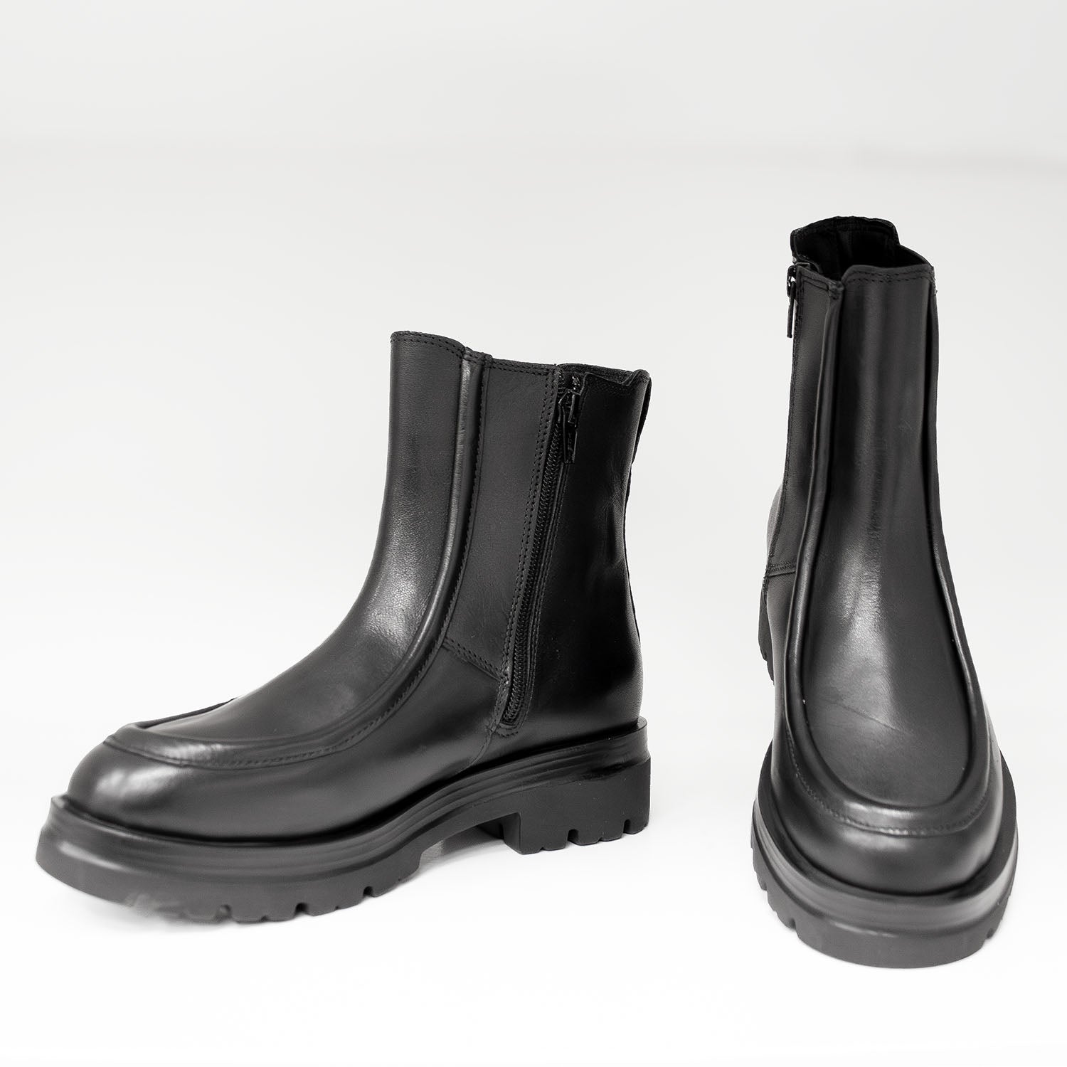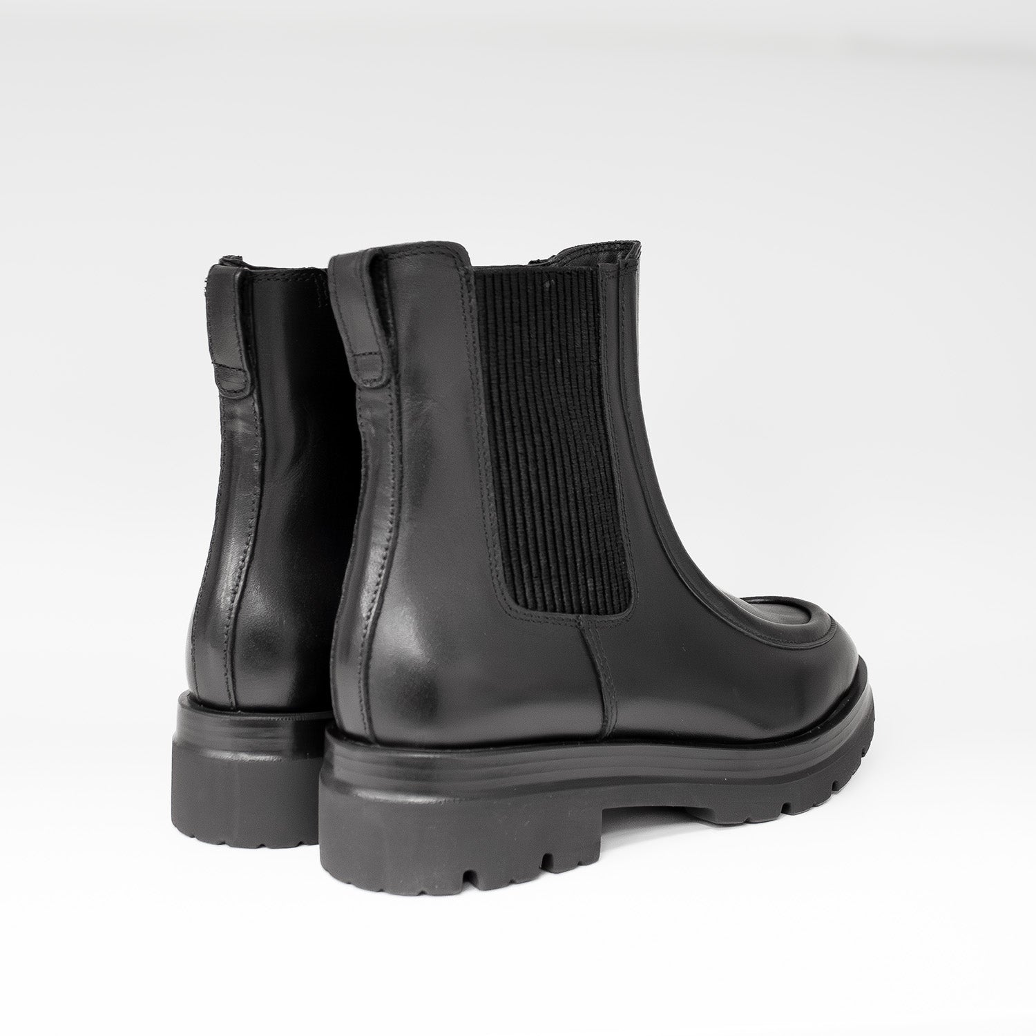 Czarne botki na platformie Igi&Co uszyto z miękkiej, naturalnej skóry licowej, która pięknie układa się na nodze i podkreśla linię cholewki. Po bokach wszyto elastyczne panele, ułatwiające zakładanie i dopasowanie, a boczny zamek dodaje wygody w codziennym użytkowaniu. Okrągłe noski nadają całości subtelnego wyglądu, a masywna podeszwa z platformą i niskim obcasem gwarantuje komfort i stabilność. Wnętrze z miękką, skórzaną wkładką i delikatnym ociepleniem sprawia, że model sprawdzi się idealnie w chłodniejsze miesiące, wprowadzając włoską elegancję do codziennych zestawów.