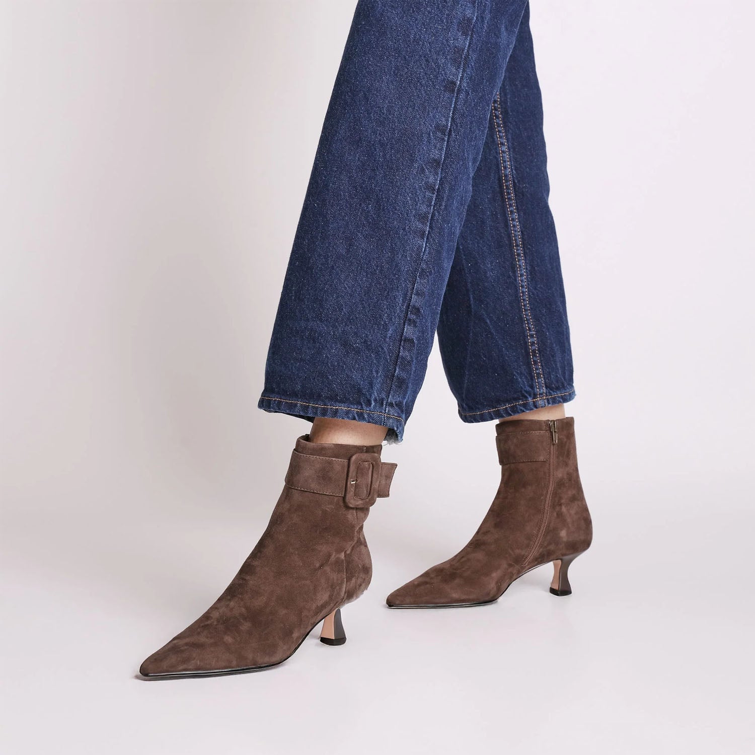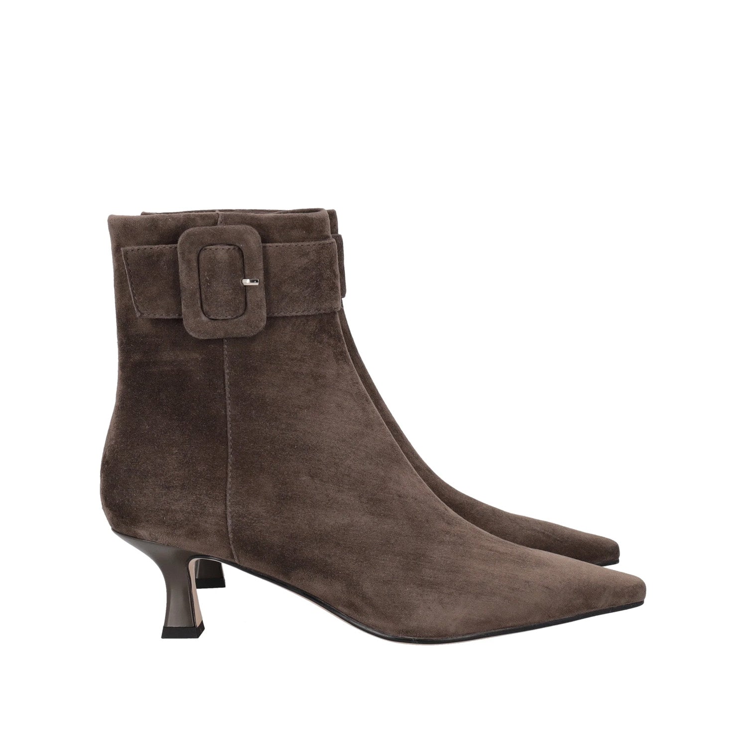Botki Tosca Blu – brązowe, zamszowe, na obcasie