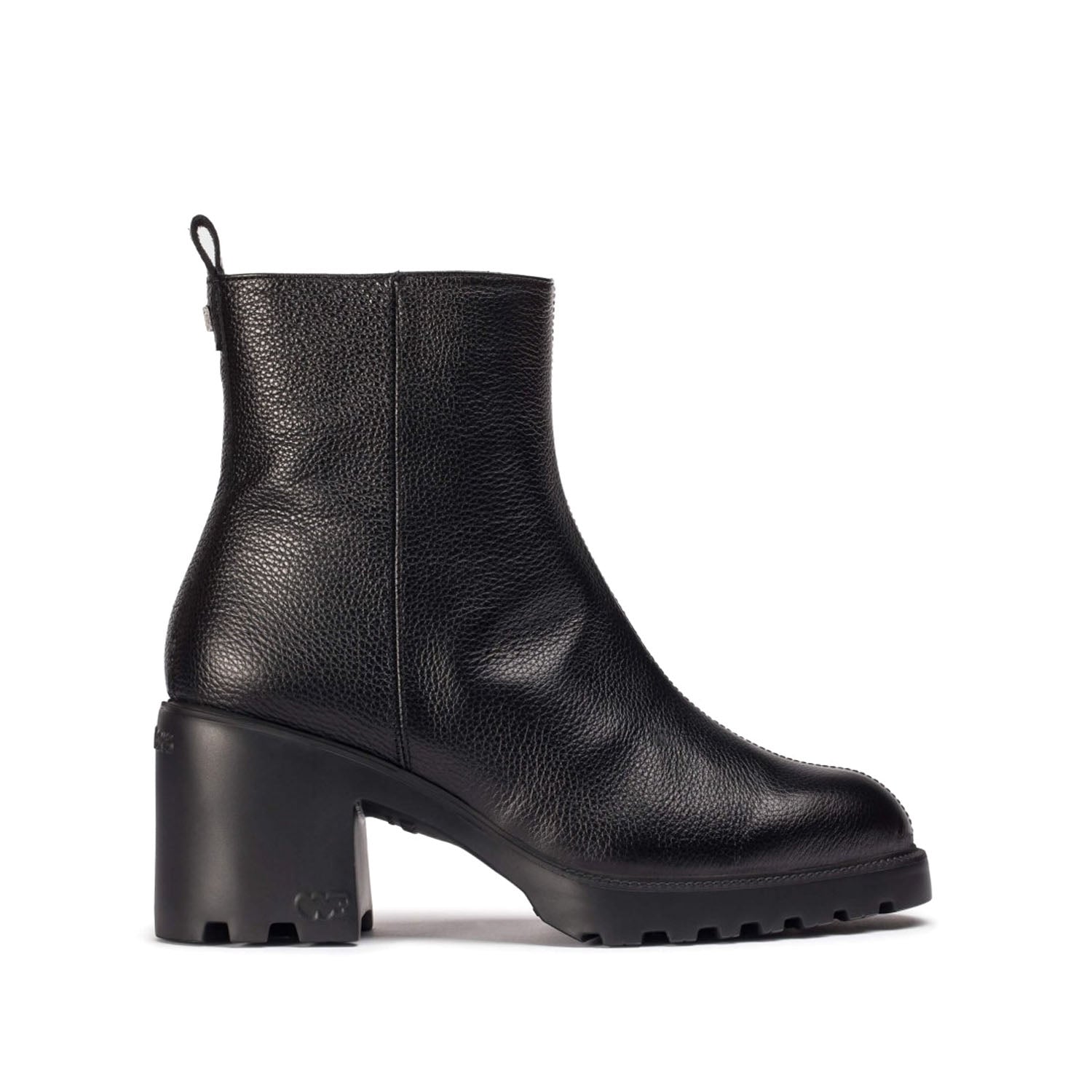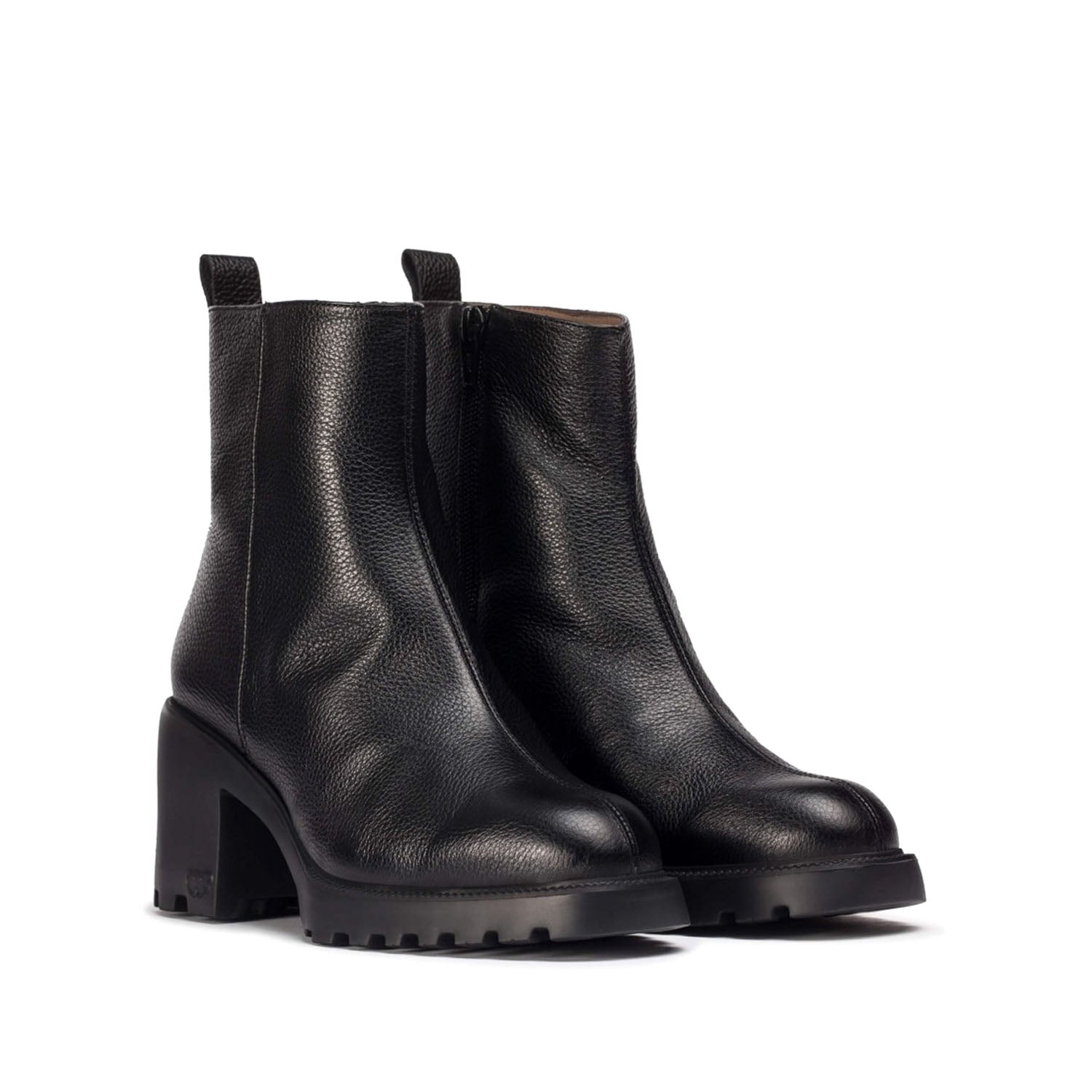 Czarne botki Wonders ILMA wykonane z naturalnej skóry o subtelnej, ziarnistej fakturze wyróżniają się elegancką linią i nowoczesnym charakterem. Stabilny słupek został zestawiony z traktorową podeszwą, dzięki czemu buty dodają pewności kroku i lekko podnoszą sylwetkę. Boczne zapięcie na zamek sprawia, że model jest praktyczny i wygodny w codziennym użytkowaniu. Wnętrze wyposażono we wkładkę MemoryGel, która dba o komfort przez cały dzień. To botki stworzone do miejskich stylizacji – pasują zarówno do jeansów, jak i do zwiewnych sukienek.