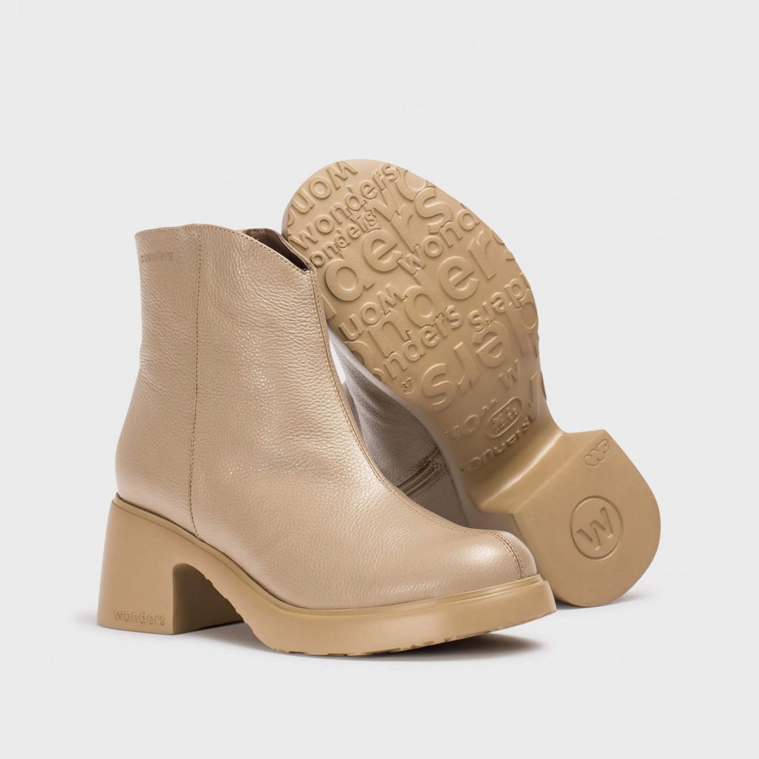 Botki Wonders – taupe, skóra naturalna, na obcasie