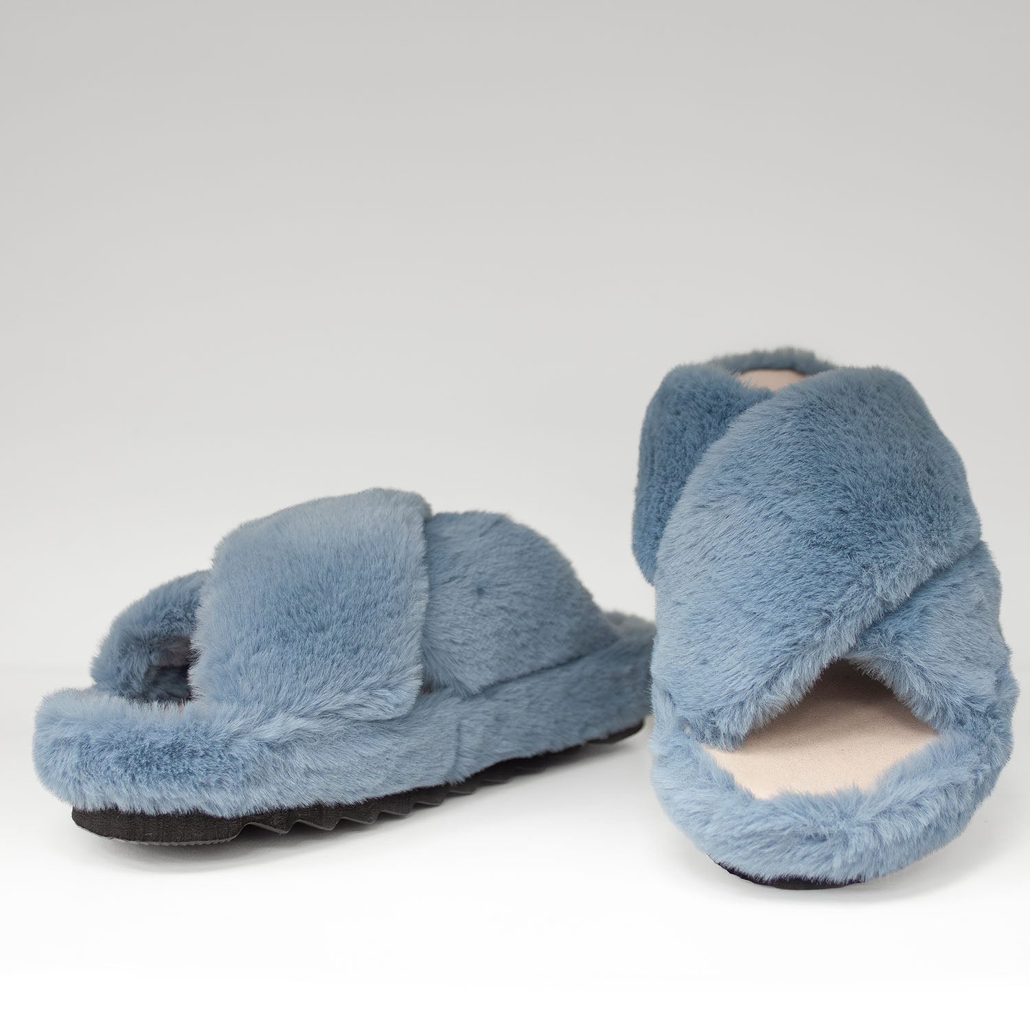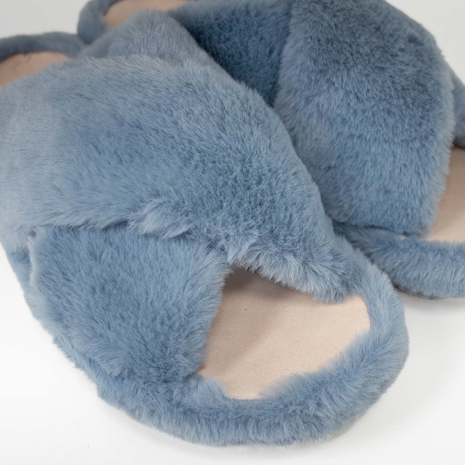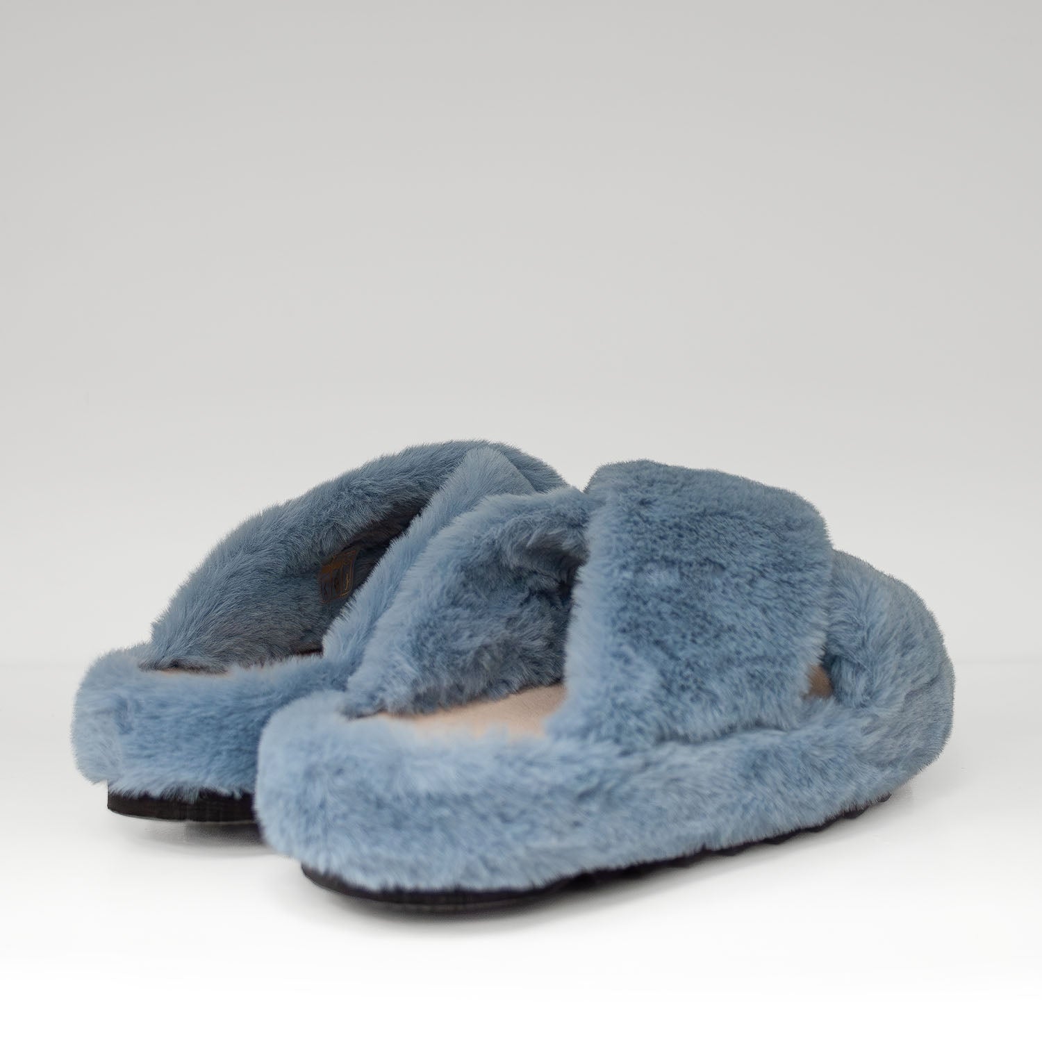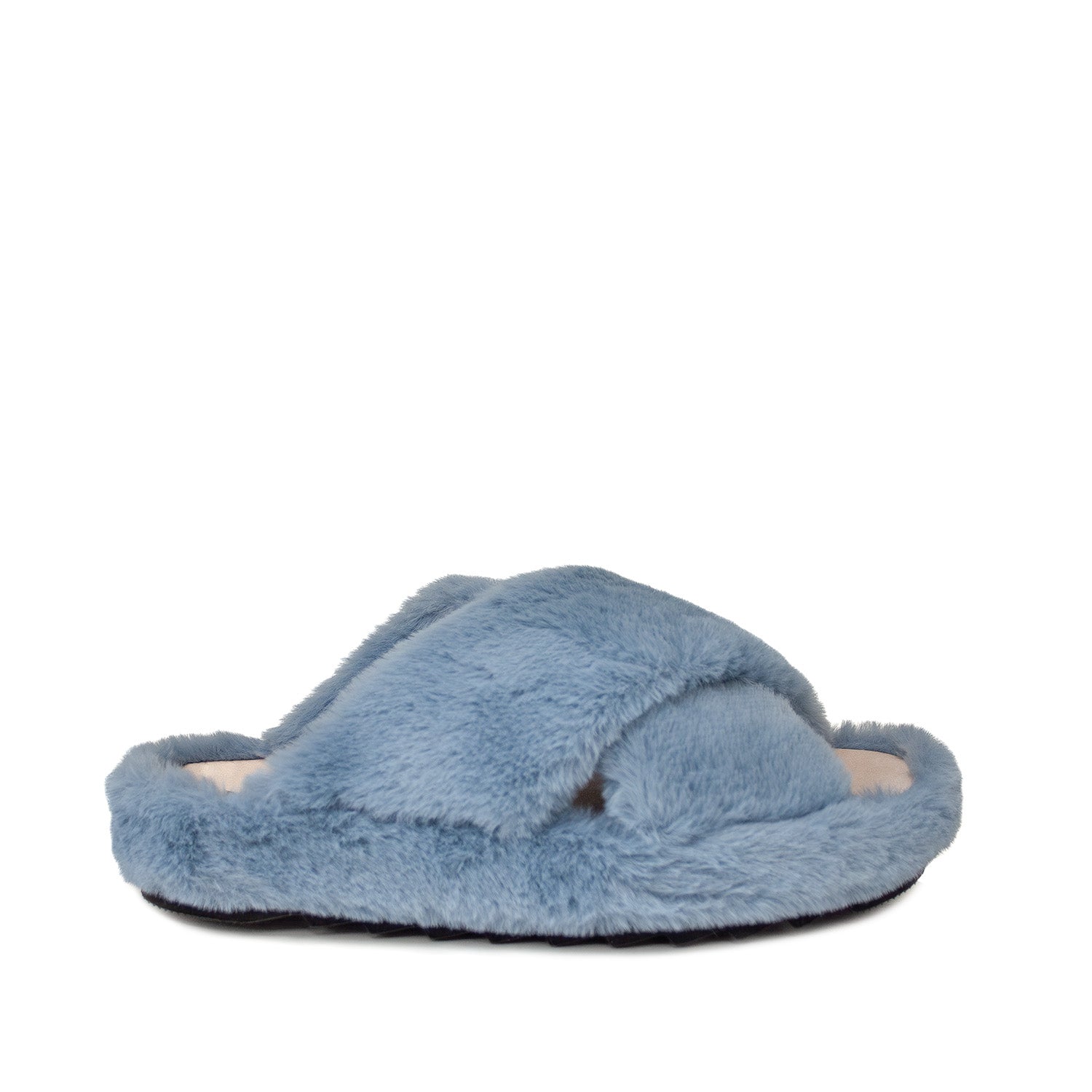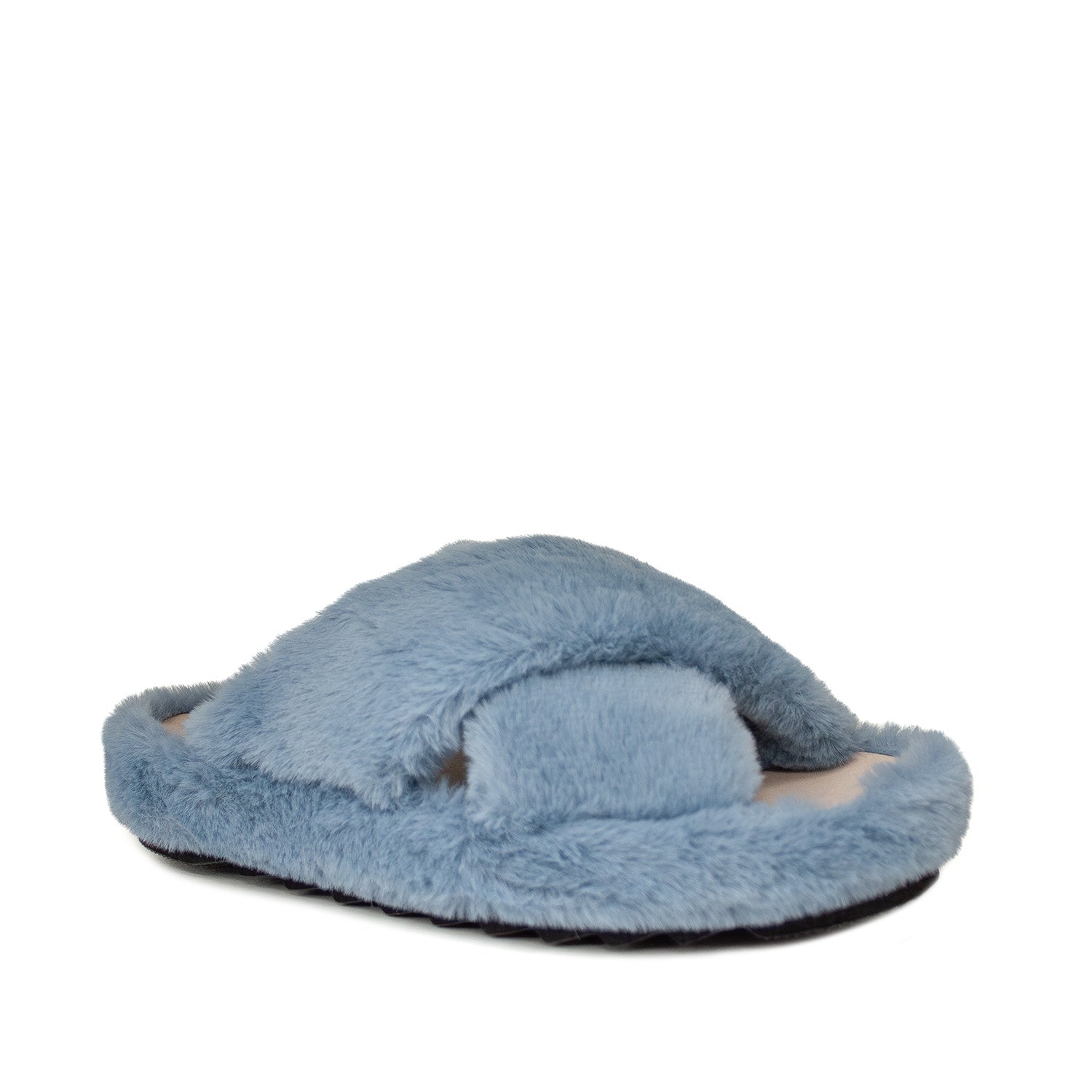 Kapcie Macarena – niebieskie, z futerkiem, klapki