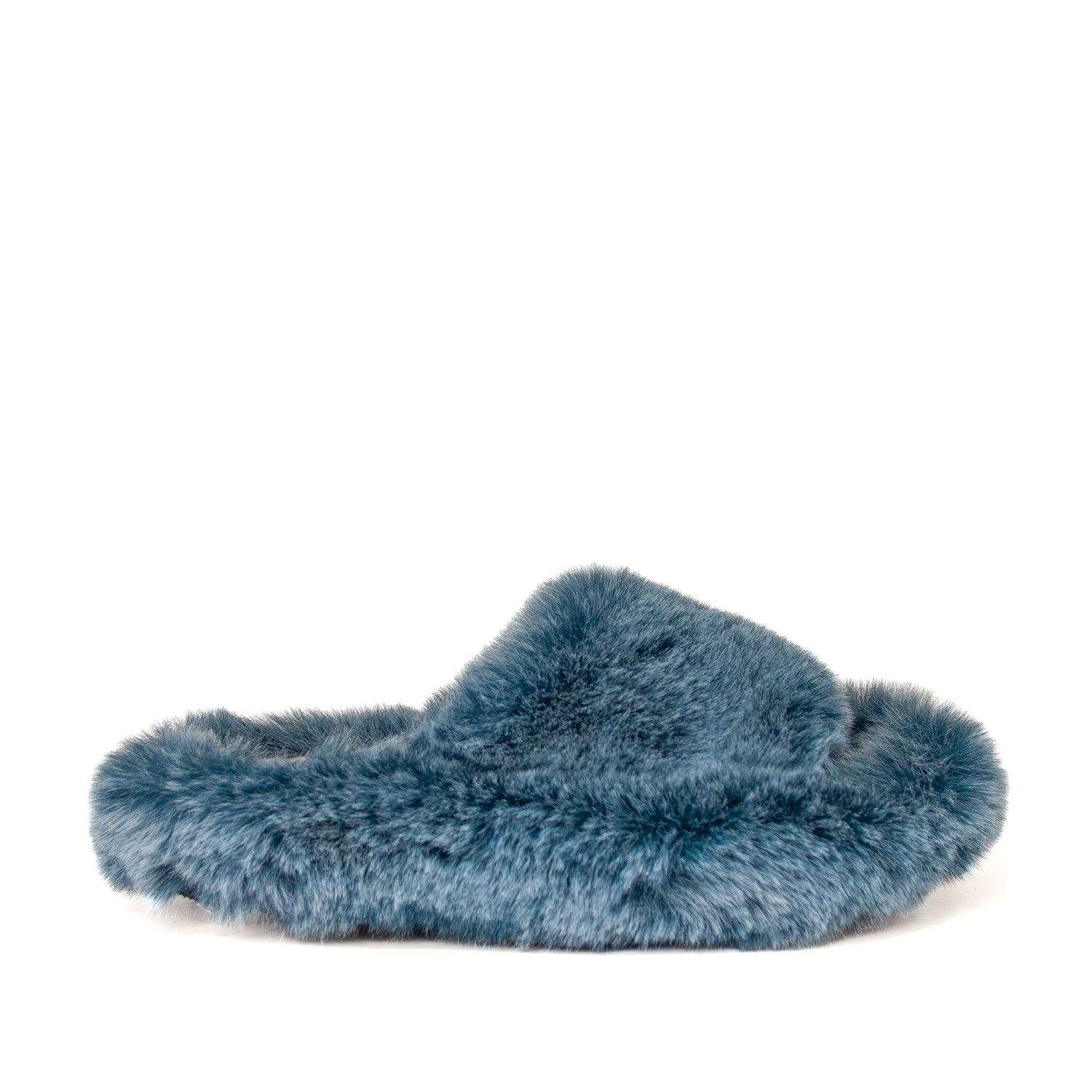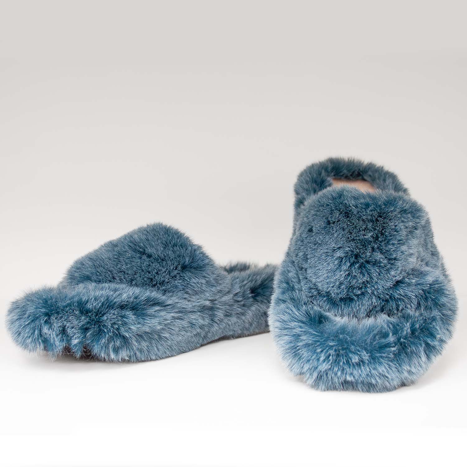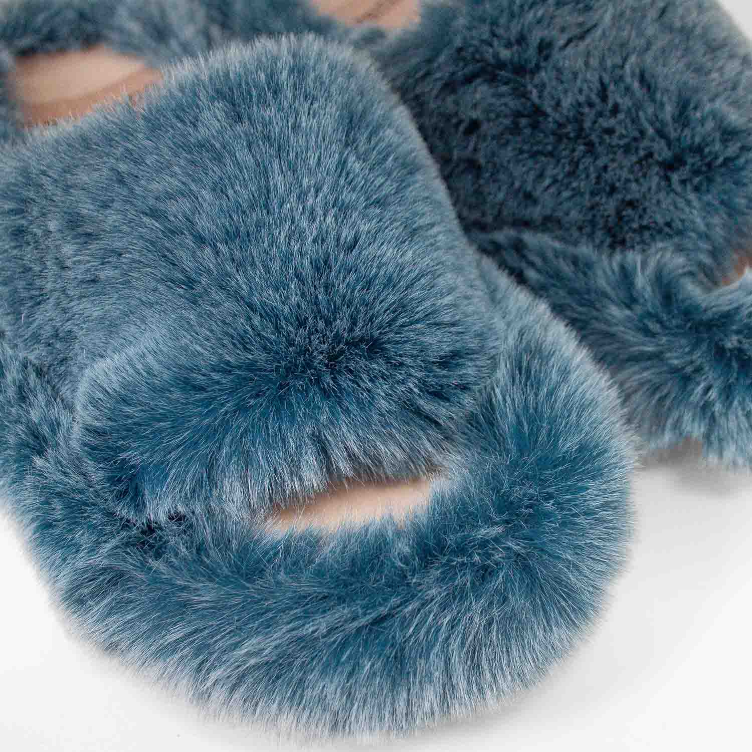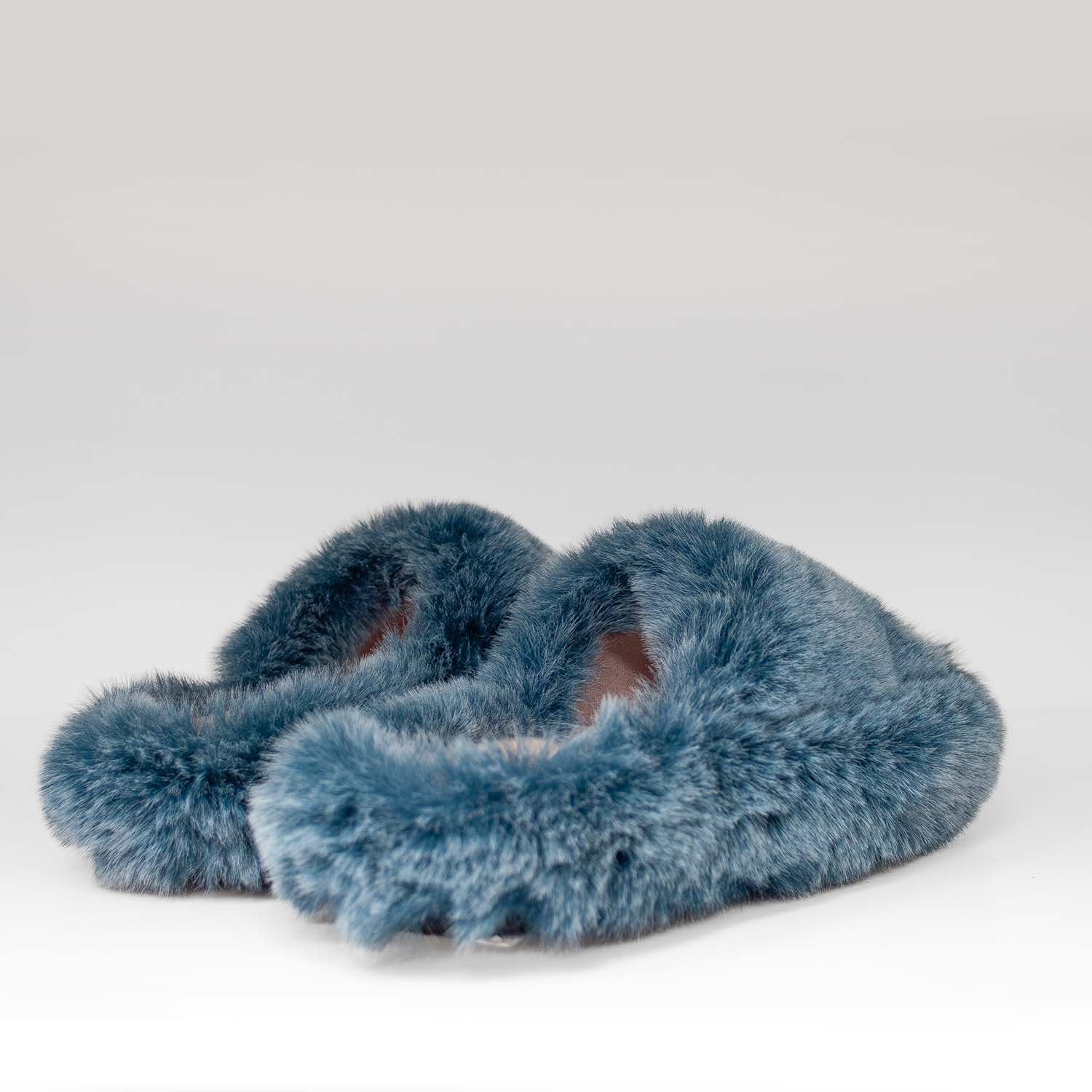 Kapcie Macarena – niebieskie, z futerkiem, klapki
