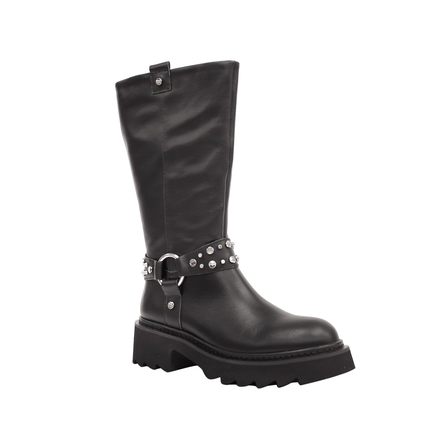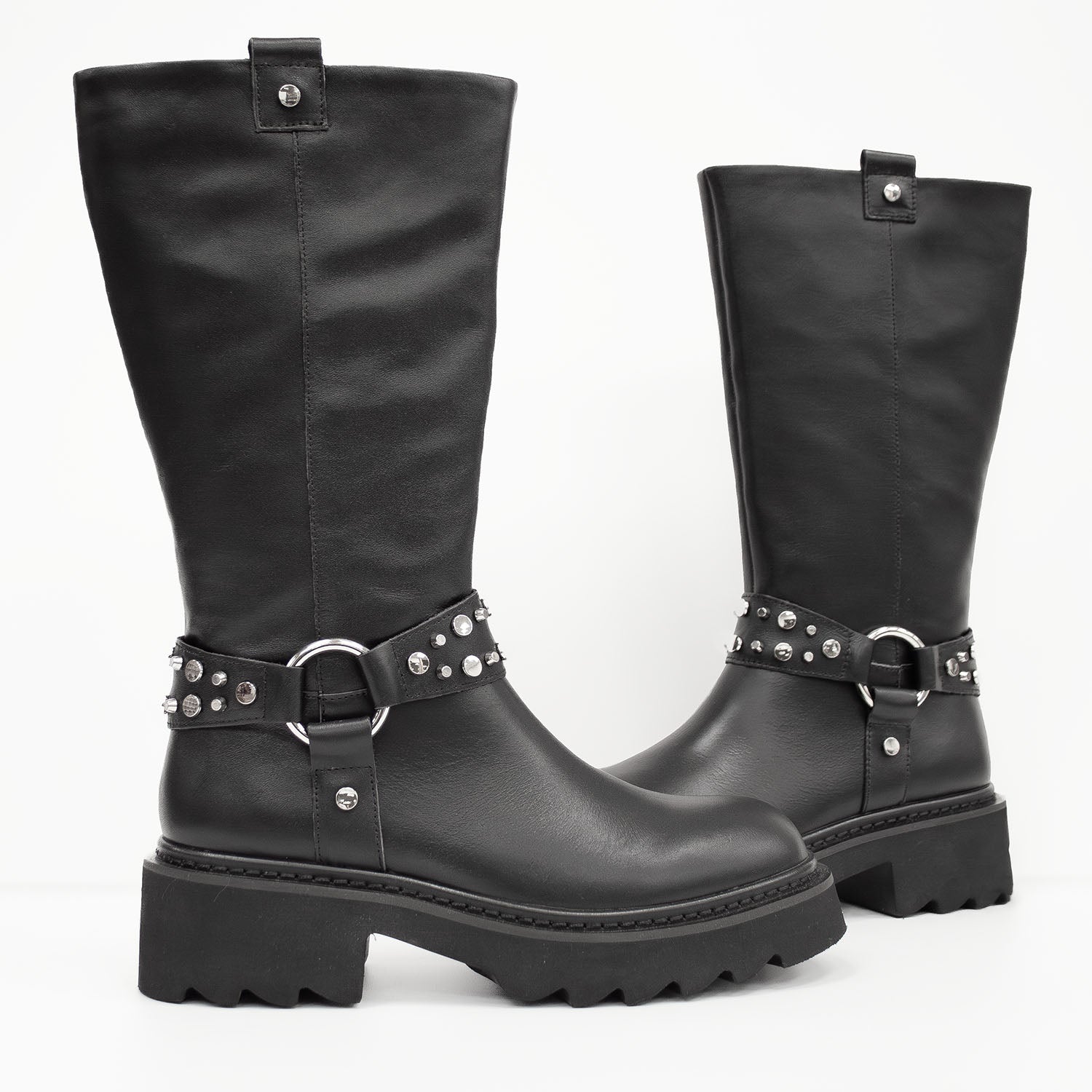 Kozaki Tosca Blu – czarne, skórzane, z napami