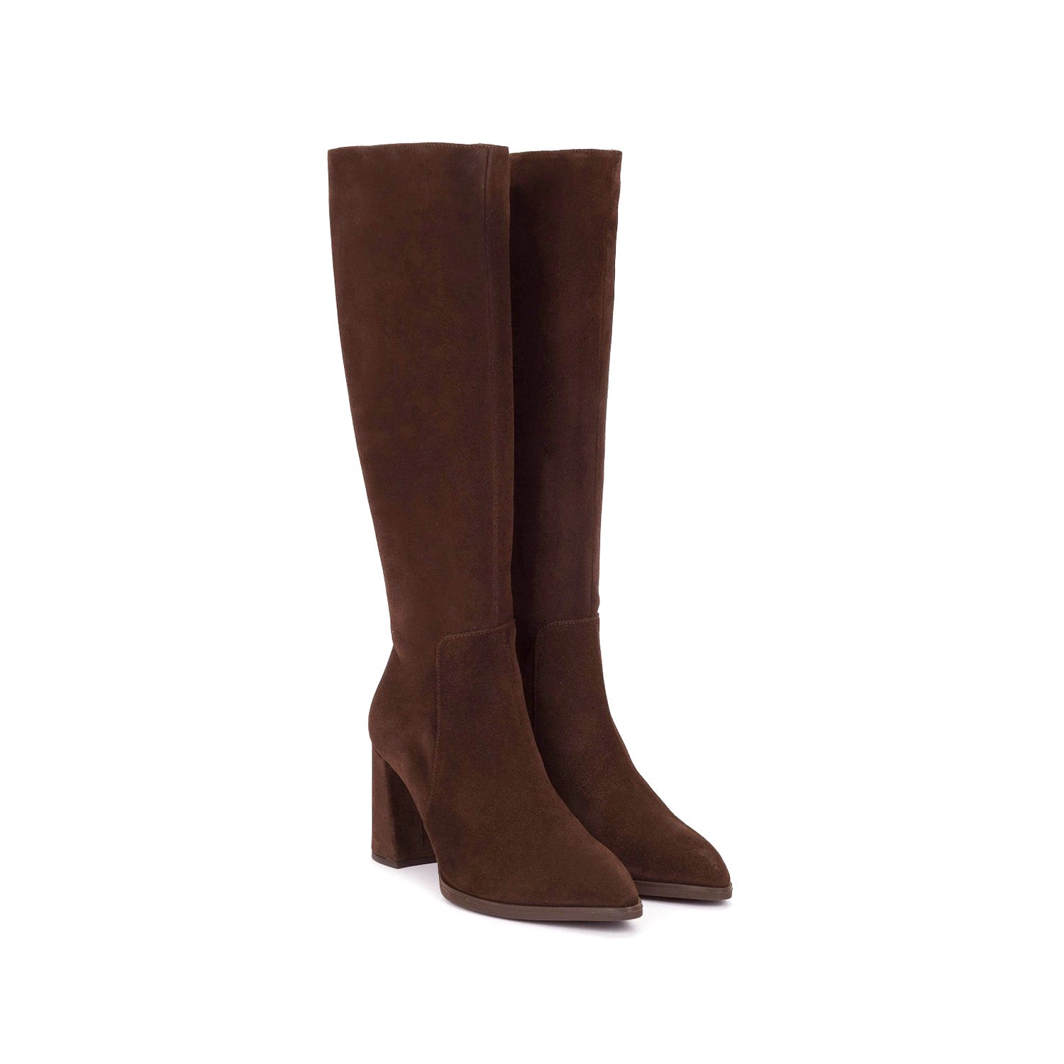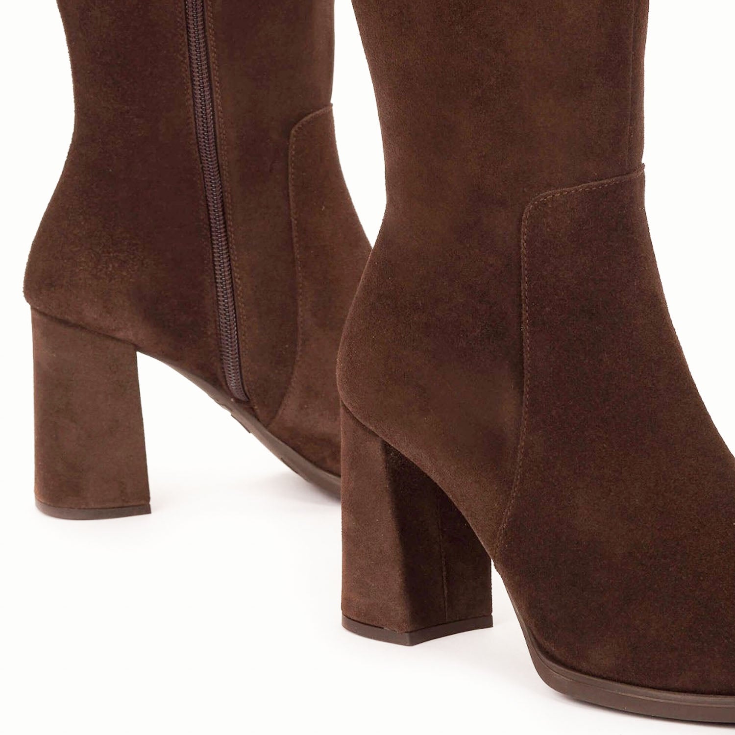 Brązowe kozaki Wonders AURORA uszyte z naturalnego zamszu wyróżniają się czystą linią i wyjątkową miękkością materiału. Wysoka cholewka pięknie wysmukla nogę, a delikatnie szpiczasty nosek dodaje im wyrafinowania. Stabilny, szeroki obcas o wysokości 8 cm sprawia, że można w nich wygodnie chodzić przez wiele godzin, nie tracąc elegancji. Wnętrze wykonane z miękkiej skóry gwarantuje przyjemne dopasowanie, a precyzyjne przeszycia potwierdzają jakość hiszpańskiego wykonania. Ich głęboki odcień brązu doskonale komponuje się z klasycznym trenczem lub długim płaszczem w kolorze camel, tworząc pełen harmonii, kobiecy look.