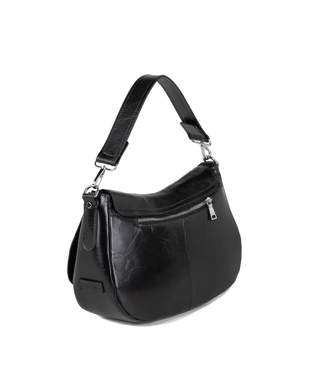 Czarna listonoszka włoskiej marki Ripani to elegancki model o zdecydowanym charakterze. Wykonana z naturalnej skóry licowej, ozdobiona została symetrycznym układem srebrnych nitów, które podkreślają linię torebki i dodają jej wyrazistości. Dzięki krótkiej rączce i długiemu, regulowanemu paskowi można ją nosić na kilka sposobów – wygodnie na ramieniu lub w dłoni. Zamykana na klapę z magnetycznym zatrzaskiem, oferuje dobrze zorganizowane wnętrze z kieszonkami na drobiazgi. To włoska torebka, która sprawdzi się zarówno na co dzień, jak i w wieczorowych zestawieniach.