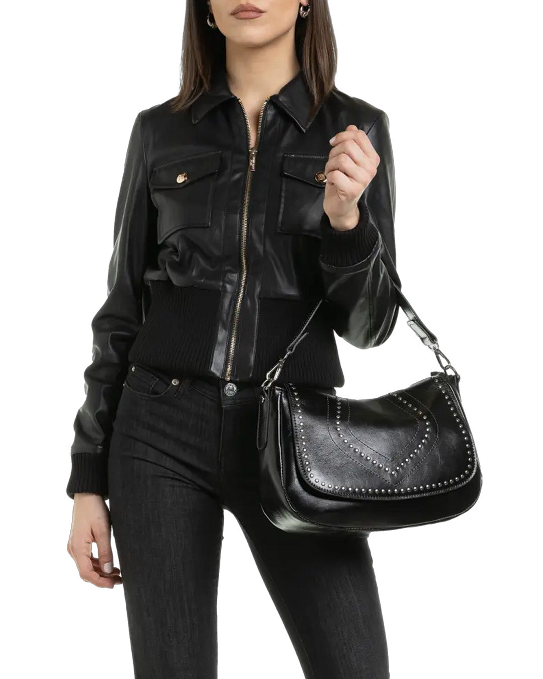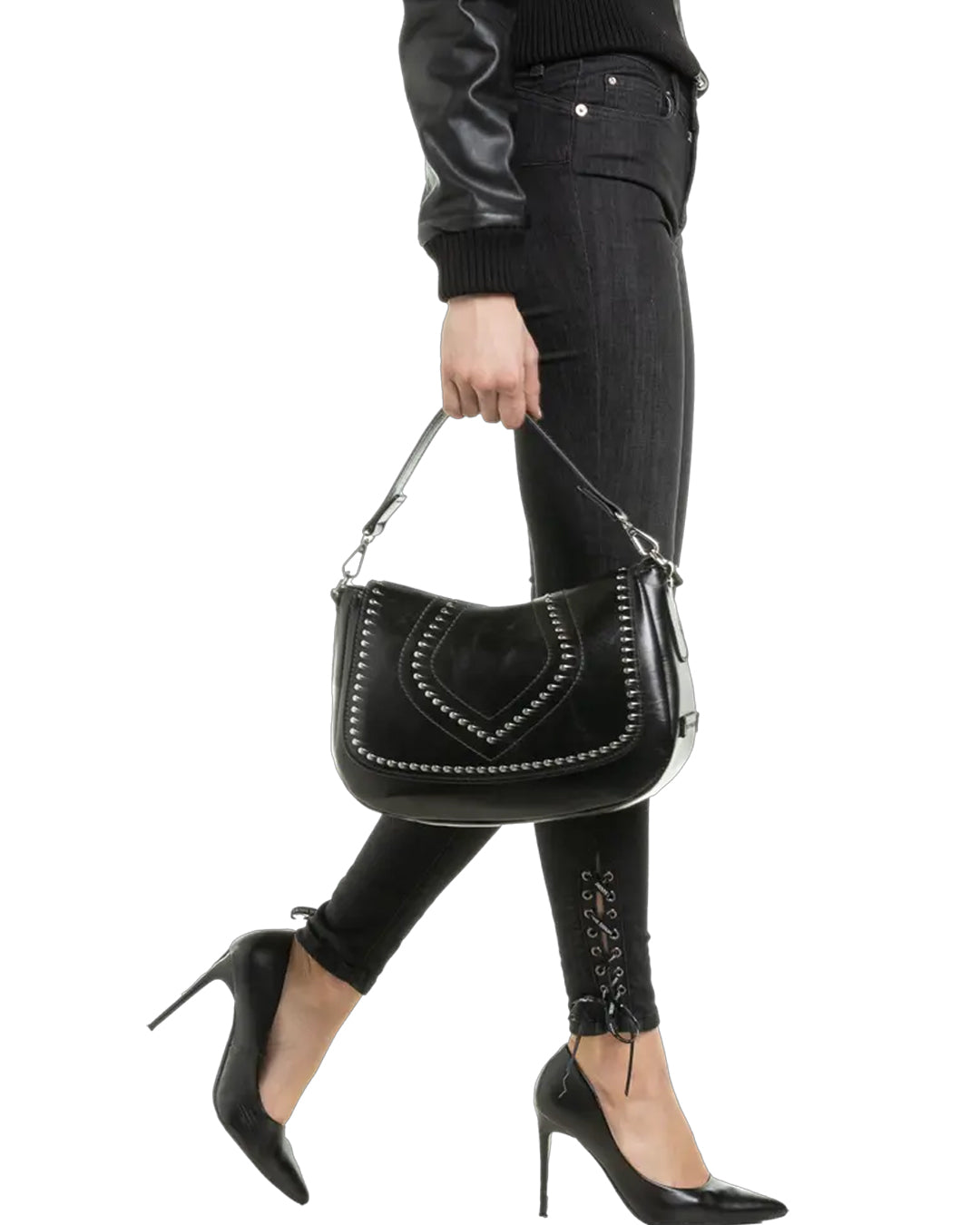 Listonoszka Ripani – czarna, skórzana, z nitami