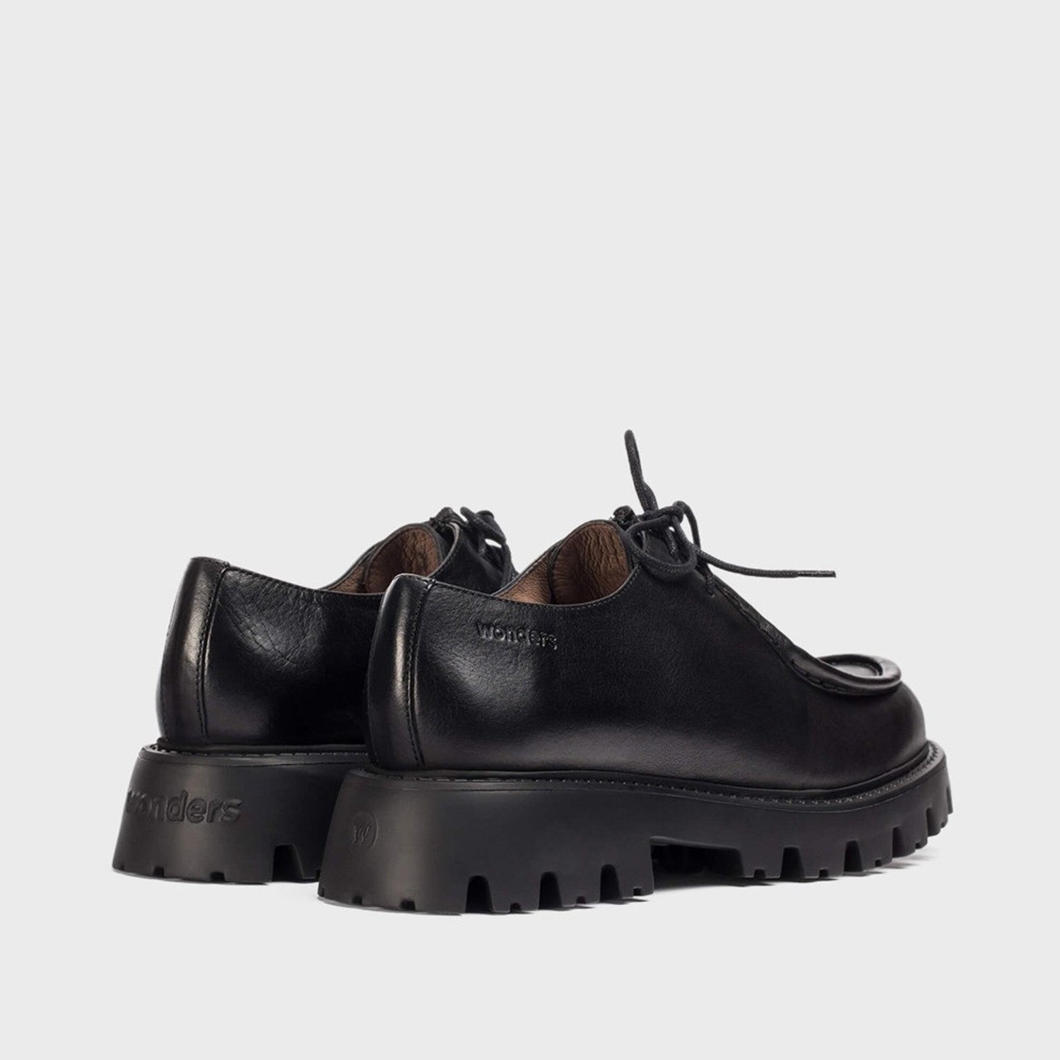 Czarne mokasyny Wonders wykonane z naturalnej skóry zachwycają minimalistyczną formą i solidnym charakterem. Ich fason inspirowany stylem wallabee wyróżnia się delikatnym sznurowaniem i miękką linią przeszyć wokół noska. Lekka podeszwa WondersFly z technologią Fly Grip zapewnia doskonałą amortyzację i przyczepność, a wkładka MemoryGel dopasowuje się do kształtu stopy. To nowoczesne mokasyny w miejskim wydaniu – idealne do oversize’owych marynarek, prostych spodni lub swetra z grubym splotem.