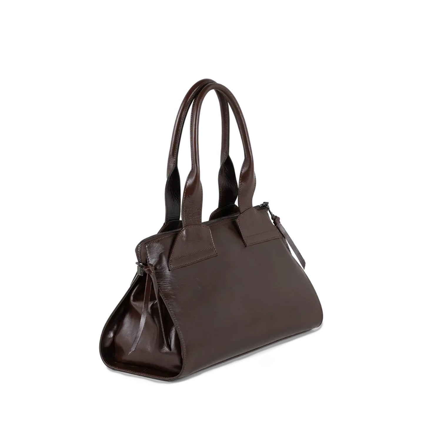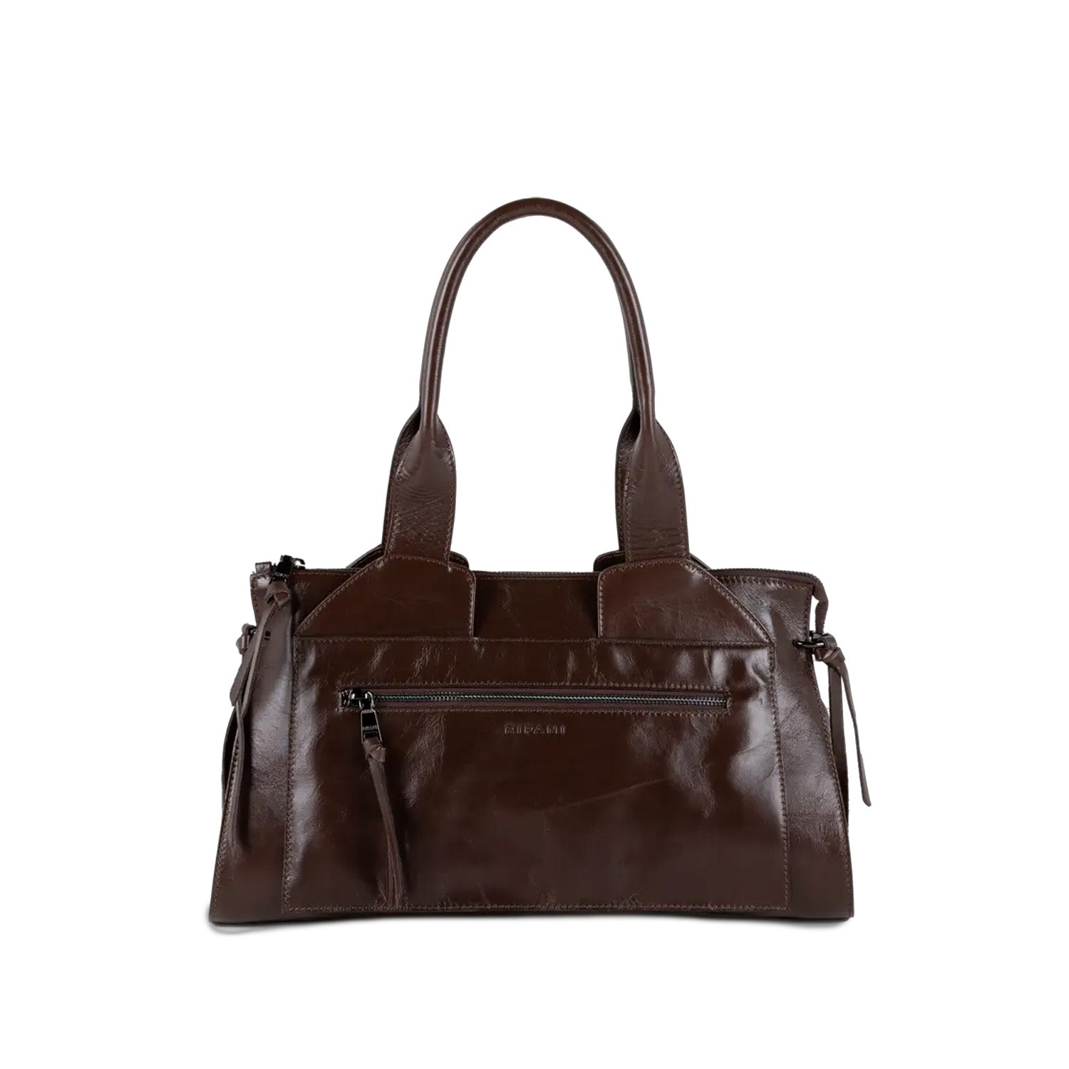 Shopperka Ripani w głębokim, czekoladowym brązie to propozycja dla kobiet, które szukają połączenia ponadczasowej formy i włoskiej elegancji. Wykonana z naturalnej skóry licowej, zachwyca subtelnym połyskiem i starannością wykończenia. Główna komora zapinana na zamek mieści wszystkie codzienne drobiazgi, a zewnętrzna kieszeń z przodu dodaje funkcjonalności. Długie rączki umożliwiają wygodne noszenie w dłoni lub na ramieniu. Włoska torebka Ripani doskonale dopełni stylizacje z wełnianym płaszczem, spodniami z wysokim stanem i botkami.