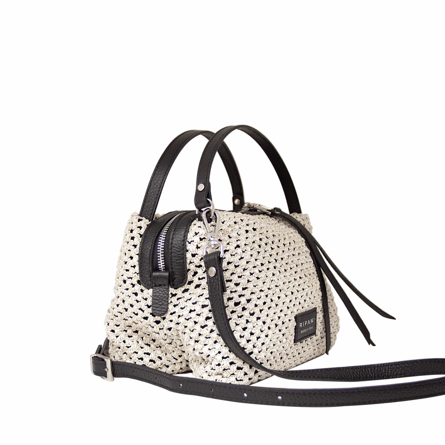 Beżowa torebka hobo Ripani Rondine to włoski projekt, w którym lekkość rafii spotyka się z elegancją czarnej skóry licowej. Pleciona struktura nadaje torbie letniego charakteru, a skórzane detale podkreślają jej wyrafinowany styl. Model wyposażono w krótkie rączki oraz długi, regulowany pasek, dzięki czemu można nosić go zarówno w ręku, jak i na ramieniu. Torebka zapinana jest na zamek błyskawiczny, a wnętrze wykończone podszewką kryje trzy kieszonki, w tym jedną na suwak. Idealna dla kobiet ceniących wygodę i włoską elegancję w codziennym wydaniu.